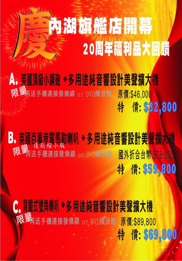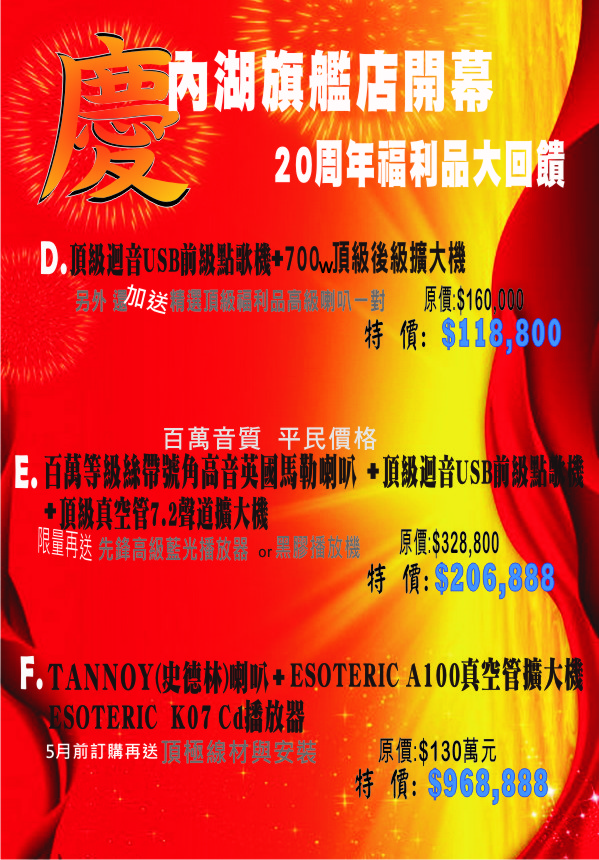 ※內湖旗艦店開幕特惠!頂級音響組合特價方案,錯過你絕對會後悔